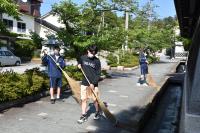 本校では毎週水曜日に各部活動と生徒会役員とで参道清掃を行っています。今回はボランティア部と、前期生徒会役員の生徒たちで行いました。
