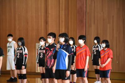 生徒会代表の挨拶では丸山 孔太郎さんが「総体はこれまで一生懸命練習してきた成果を発揮する最高の場である」と述べ、「自信を持って楽しんでください。選手の皆さんの活躍を期待しています」とエールを送りました。