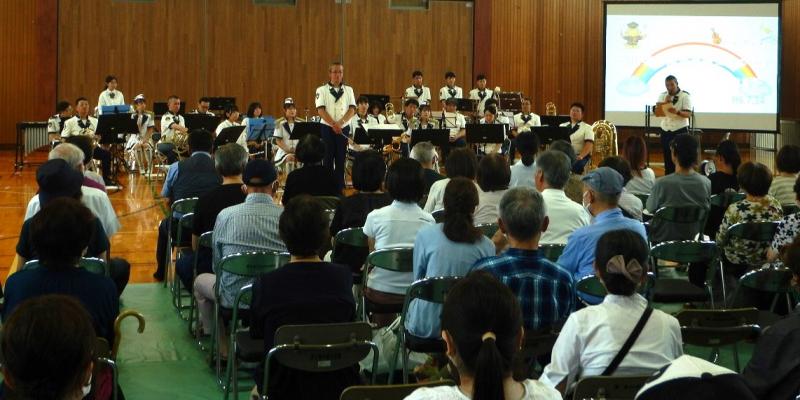 7月14日(日)の午後、本校体育館で石川県警音楽隊と本校吹奏楽部の合同演奏会が行われました。本校の吹奏楽部の部員は現在5名で、普段はなかなか厚みのある合奏を楽しむことができません。部員達はこの演奏会に向けて一生懸命に練習したのはもちろんですが、たくさんの人数で演奏できることをとても楽しみにしていました。また、少人数のためこの演奏会の準備と後片付けもとても大変です。そのため、演奏会に来てくれたソフトボール部だけでなく、ソフトテニス部やバスケットボール部の人達も、準備や後片付けを手伝ってくれました。