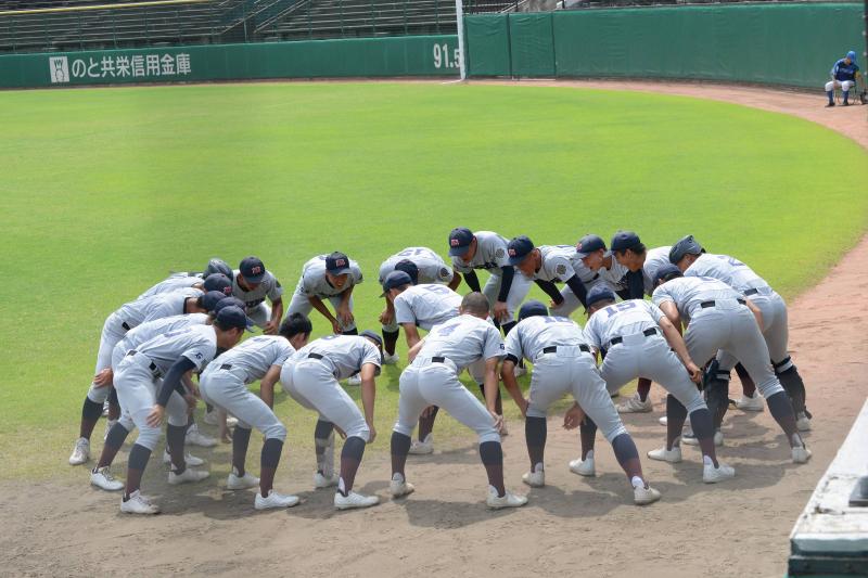 令和7年7月14日(月)、第107回全国高等学校野球選手権石川大会の2回戦、門前高等学校と金沢市立工業高等学校の試合が行われました。14時からの第3試合で暑さが懸念されましたが、たくさんの保護者の皆様ならびに地域の方々が現地で声援を送ってくださいました。また門前会館では、全校生徒がパブリックビューイング形式で試合を見守ってくれました。応援をたまわりましたすべての方々に心から感謝申し上げます。