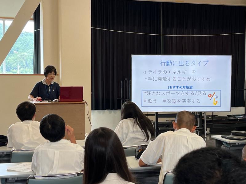 7月17日(木)は本校スクールカウンセラーの西崎先生を講師としてお招きして、「SOSの出し方」をテーマに学年別こころのサポート授業を実施しました。