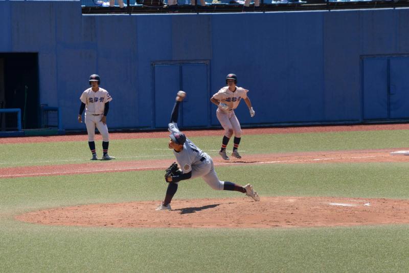 先発の背番号1番 石田煌峨、次いで背番号11番 茶畑隼佑に続き、5回から登板した背番号10番 坂井稜成は、力強くも落ち着いた制球で8回まで無失点に抑えます。9回裏、ノーアウト2・3塁であっても、彼らなら守り切れる、チームで勝つことができると誰もが信じていました。そんな期待もむなしく、高く放たれた球はセンター越えのヒットとなり、7対8、遊学館高校のサヨナラ勝ちとなりました。