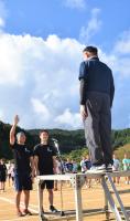 団対抗リレーでは先生もチームを組み、アンカーの校長先生が大激走!