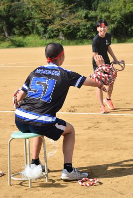 雨天のため延び延びになっていた「体育祭」が、9月29日(金)に行われました。当日は気持ちのいいくらいの晴天に恵まれて、赤団、青団に分かれて3学年が入り混ざっての競争。どの競技にも学年を超えて協力し合いながら取り組み、楽しく笑顔があふれる体育祭となりました。