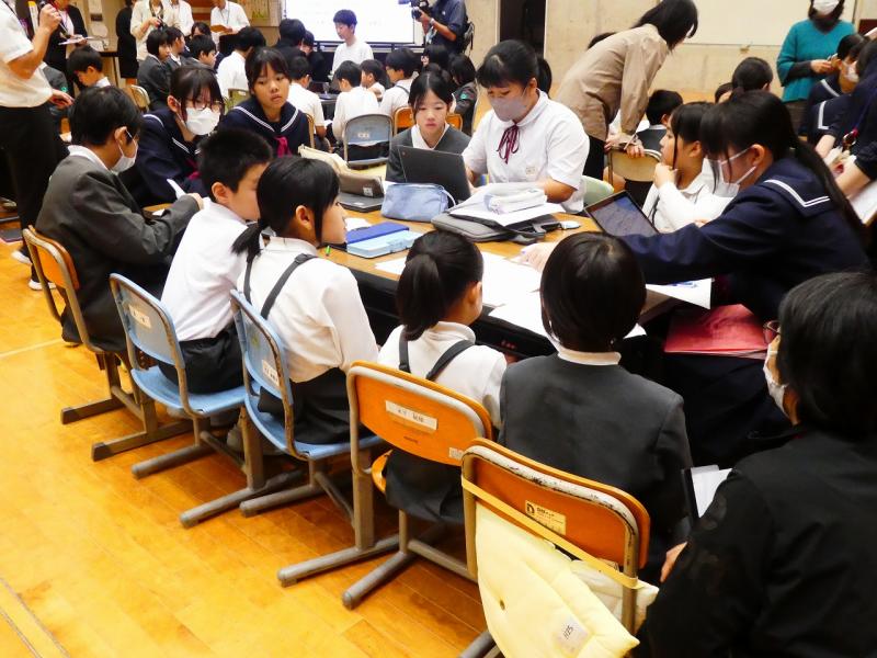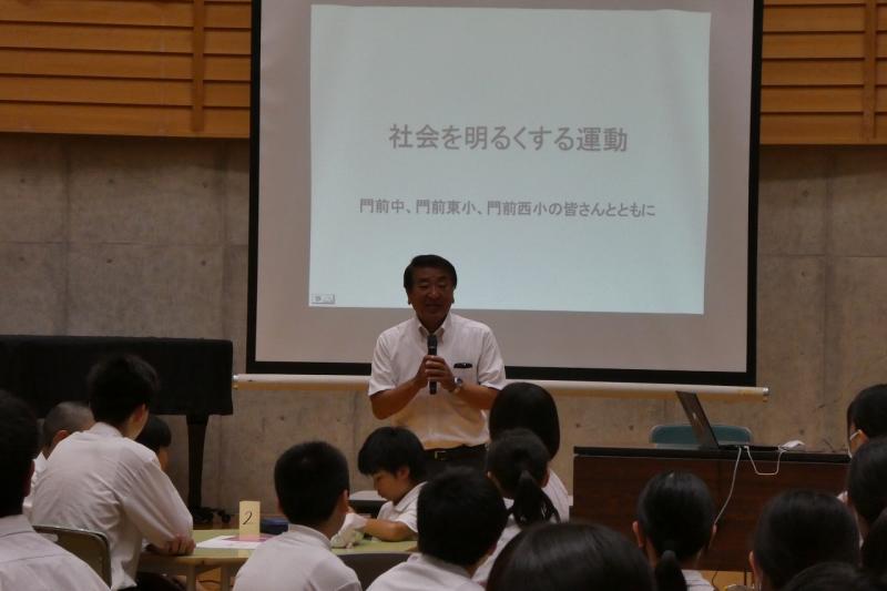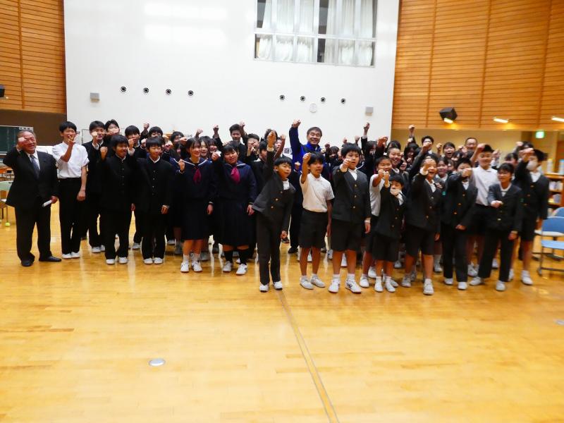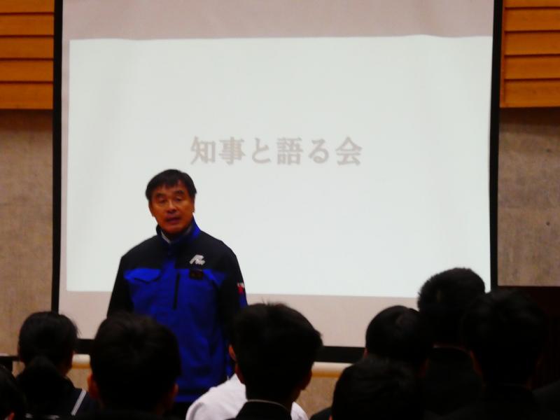 馳浩石川県知事をお迎えし、小中合同で「知事と語る会」を開催いたしました。