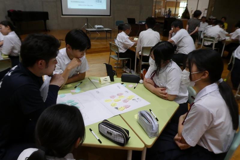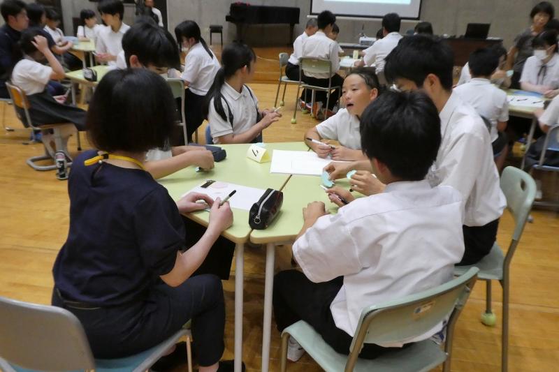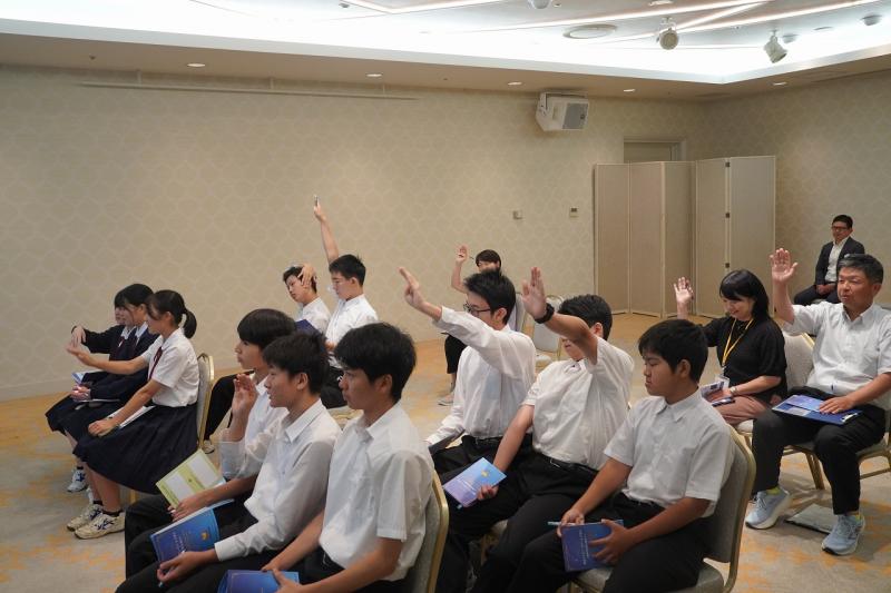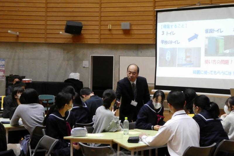その後のワークショップでは、グループに分かれて意見交換を行いました。中学生からは、断水時のトイレの工夫や避難所での生活、ライフラインが途絶えた中での不安など、実体験に基づいた話を伝えました 。当時のことを思い出すのが辛いと感じる場面もありましたが 、「自分たちの経験を、他県の防災に役立ててほしい」という強い思いで、一生懸命に言葉を紡いでいました 。