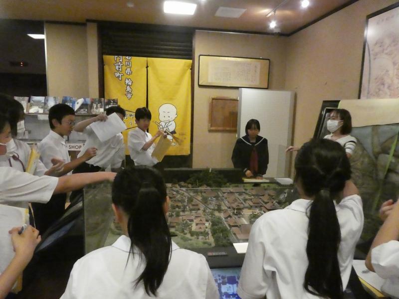生徒たちは、總持寺通り商店街の歴史を学んだ後、仮設店舗で商店街を営んでいる事業主の方々から貴重なお話を伺いました。お話の中では、地震後の店舗の様子やその時の思い、そして、店舗を再開しようと思った理由など、様々なお話をしていただきました。