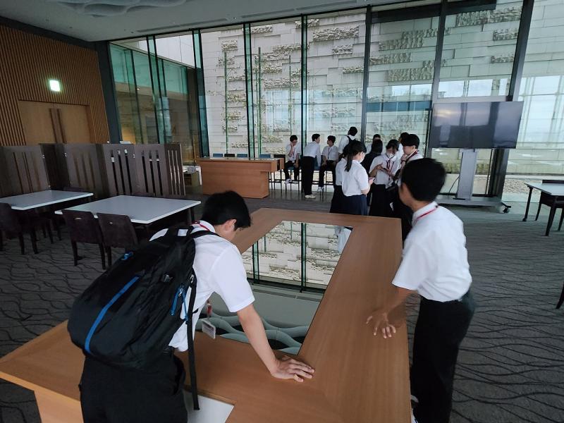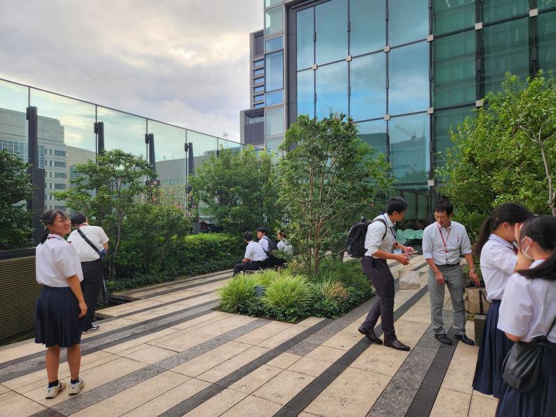 キャリア教育の一環として、新聞づくりでお世話になった読売新聞社本社を訪問しました。生徒たちは、新聞が作られる編集局や、社員の方々が憩う食堂やテラスなどを案内していただきました。このような大手企業の訪問は貴重な機会であり、生徒たちにとって大変勉強になったようです。