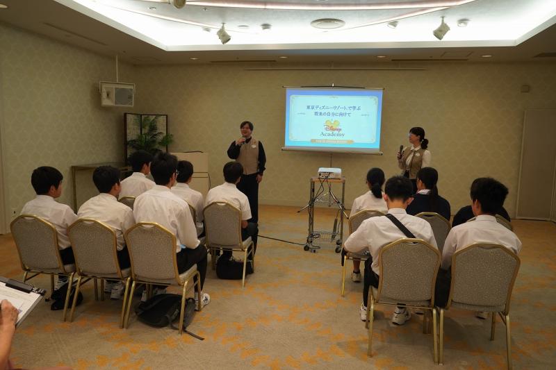 また、翌日のディズニーアカデミーでも、キャストの方から働くことの意味や喜び、働くうえで大切にしている「5つの鍵」について丁寧な指導をいただきました。常に相手の立場を考えてコミュニケーションをとっているというキャストのプロ意識を知ったうえで体験するディズニーランドは、その楽しさもひとしおだったのではないかと思います。今後、生徒たちが働くことへの憧れや期待を持てるよう、さまざまな職業の方々からお話を伺う機会を引き続き持ちたいと考えています。