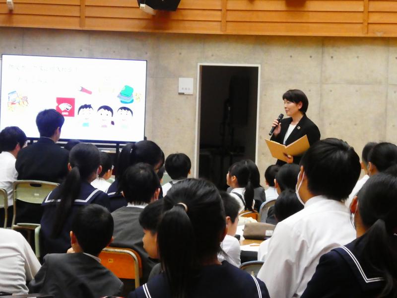 講演では、「『すみません』には3つの意味がある。謝罪だけでなく、感謝のときは『ありがとう』、呼びかけのときは『お願いします』と言い換えてみよう」というお話や、困っているときは声を上げて助けを求めることの大切さを教えていただきました 。生徒たちにとって、言葉の伝え方や、共に生きる社会について考える貴重な機会となりました 。