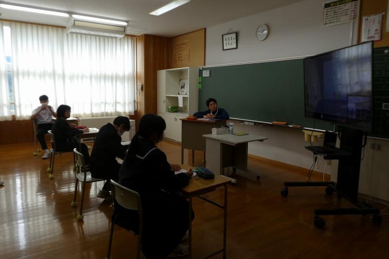 輪島中とオンラインでつないで、ヤングケアラーとは何か、周りに困っている人はいないかなどのお話を聞きました。