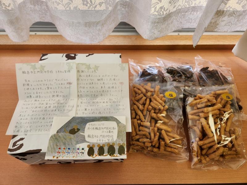 お手紙には、能登を応援する温かいメッセージとともに、生徒たちの発表や新聞などの配布する様子が立派だったとお褒めの言葉も添えられていました。