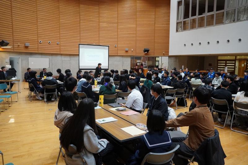 三重県の高校生を本校に迎え、防災をテーマにした交流会を行いました。はじめに、教育委員会の方々や本校職員、そして商店街の方から、能登半島地震や奥能登豪雨当時の対応や避難所運営の実際についてお話を伺いました 。