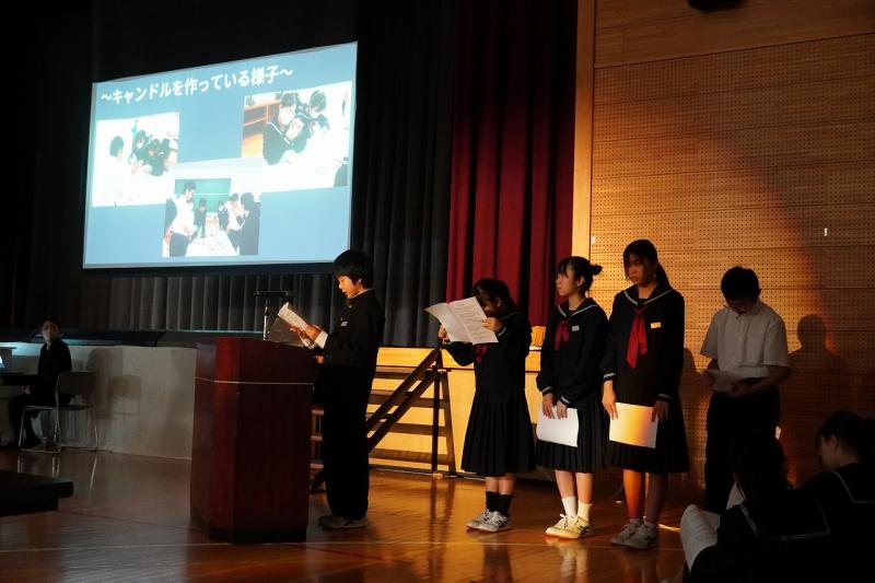 中学校からは、いしかわテラスでのPR活動や、門前高校に指導いただいた廃棄ろうそくのキャンドルづくりなどの取組についてお伝えしました。