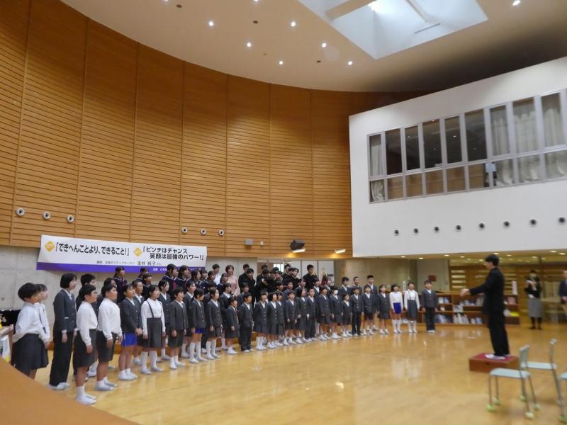 講演の最後には、感謝の気持ちを込めて全校生徒で「フェニックス」を合唱しました 。浅井さんから頂いた「笑顔のパワー」を胸に、生徒たちがこれからどんな困難もポジティブに乗り越えていくことを願っています 。