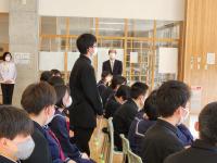任命式では役員を代表して生徒会長が抱負を述べました。