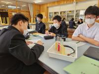 5月28日(火)の5限目に、3年生の理科で校内授業研究を行いました。学習内容は中和滴定で、水溶液内のイオンの変化についてグループで意見交換をしました。整理会で出た課題を次の授業へ生かしていきましょう。
