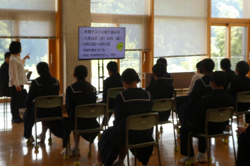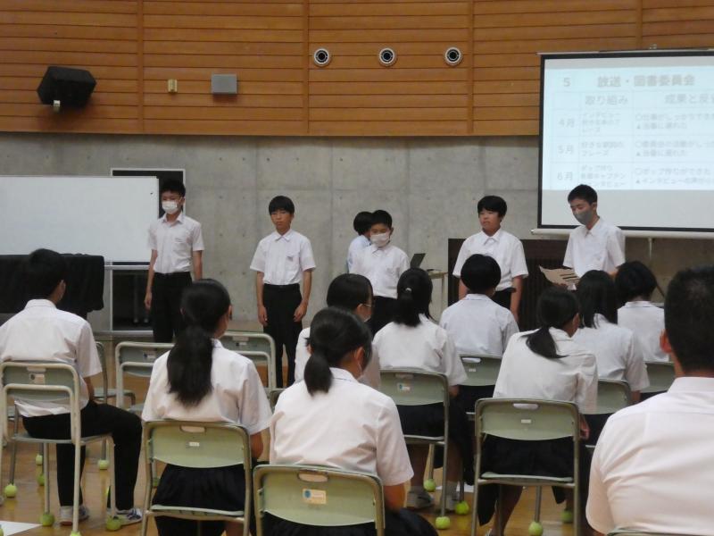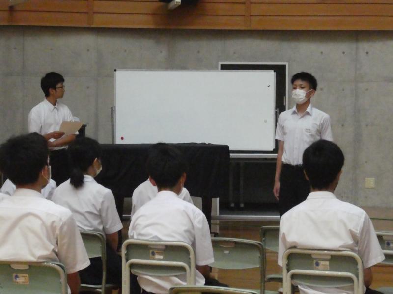 生徒会の各委員会からの報告、生活面の話、学習面の話がありました。