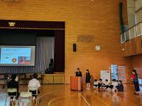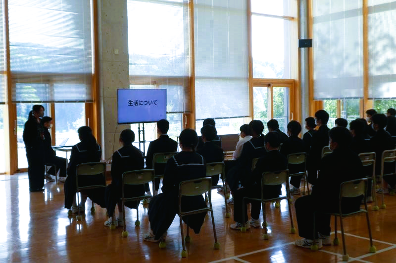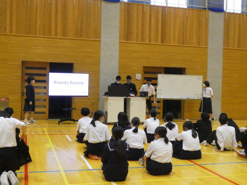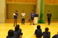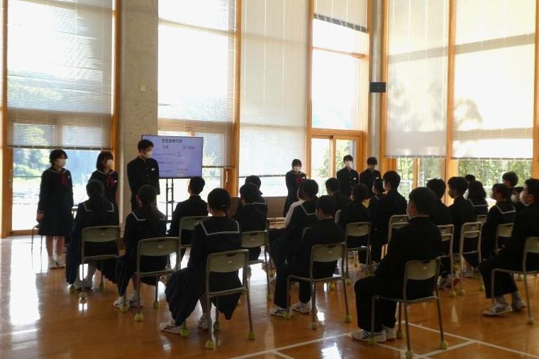 説明会では、中学校の生徒会が学校生活について紹介をしました。