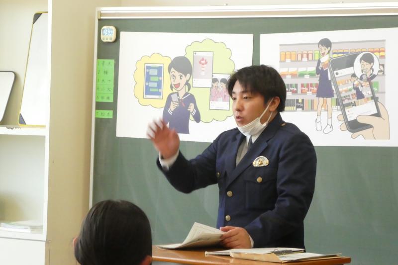 その後に、輪島警察署の生活安全課の林さんから非行被害の防止のための話がありました。
