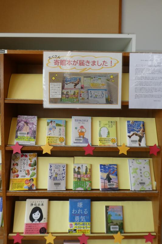 東京都港区の金井さんから本を寄贈していただきました。心を癒していただければという想いで送って頂きました。図書室にスペースを設けて、有効に活用させていただきます。ありがとぅございました。