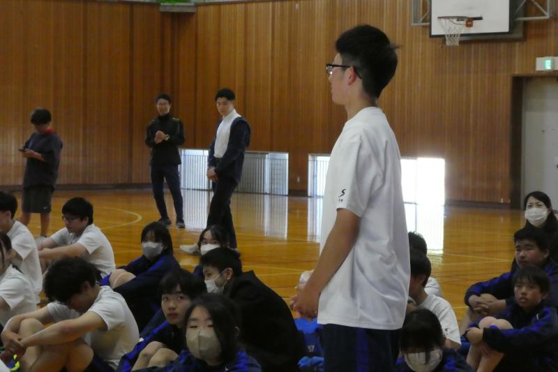 6月7日(金)の授業後に、全能登大会の壮行式を行いました。校長先生、生徒会長の激励に続いて、中高一貫教育で高校生の応援団からもエールをいただきました。有難うございました。最後に、顧問の先生から試合に向けてのメッセージがありました。悔いのない試合をしてきてください。