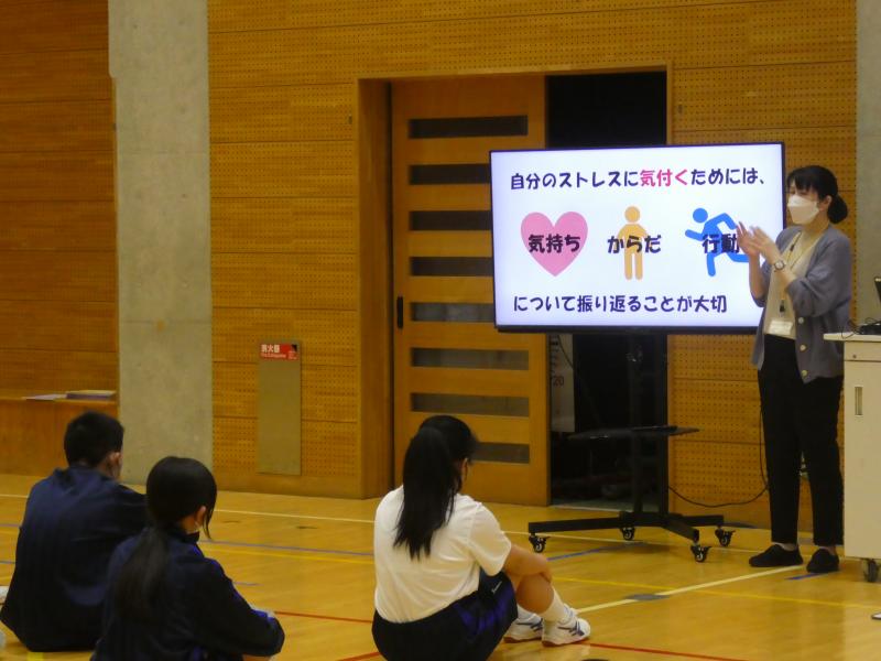 5月27日(月)の3・4限目に文部科学省から4名おいでて、生徒対象にストレス対処法についての学習をしました。3限目は1・2年生、4限目は3年生を対象に行いました。班ごとに相談して対処法をまとめていました。自分の様子を自分で把握して、対処していけるようになってほしいです。