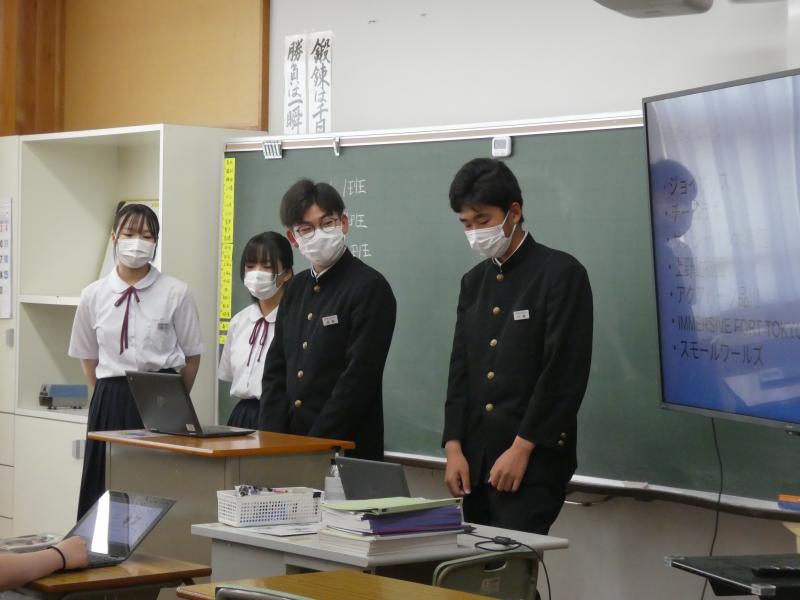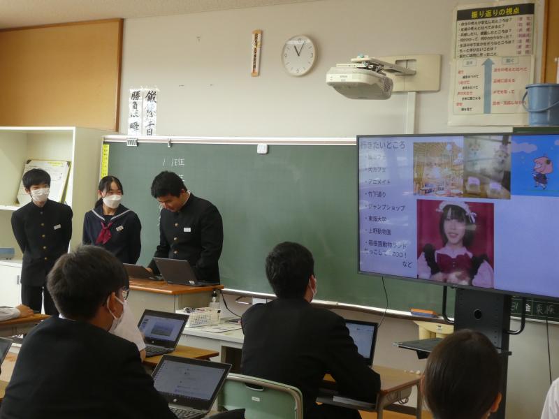 5月30日(木)に3年生が2学期に行く修学旅行のプレゼンをしました。グループごとに行きたい場所を調べて、発表しました。旅行会社の人にも来ていただき、感想をいただきました。生徒からの意見も参考にしながら最終的なコースを決定していきます。事前の調べが出来ていると旅行は楽しくなります。学を修めることもお忘れなく!