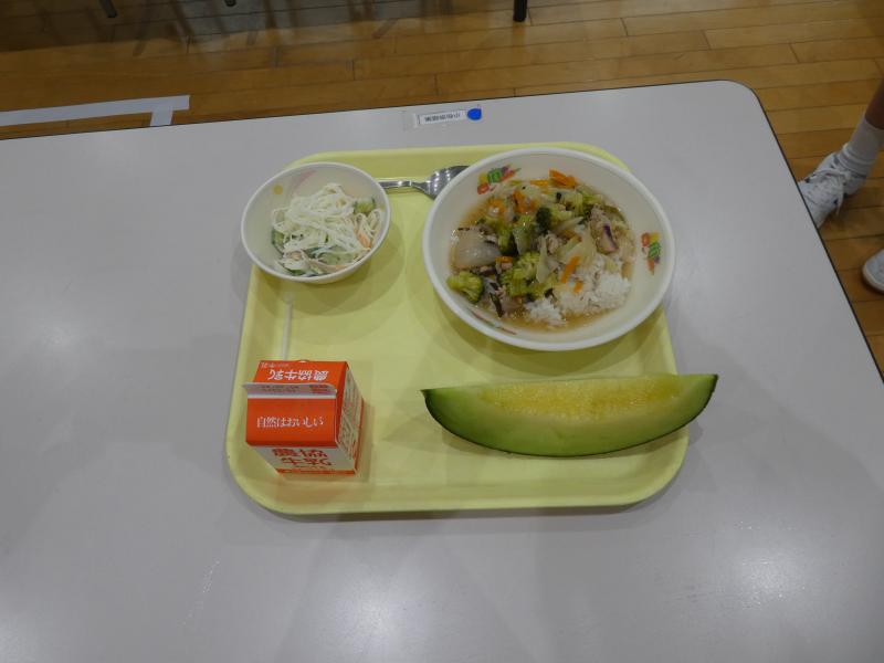 6月28日(金)の給食には大きなメロンが出ました。輪島の子どもたちを応援する会からいただいた「イバラキング」でした。茨城産のメロンでとっても大きく、ジューシーで、甘いメロンで、まさに食べごろでした。有難うございました。
