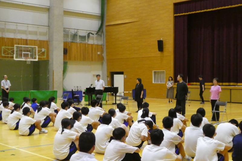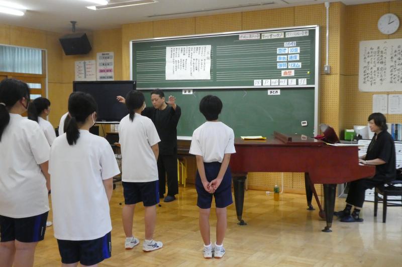7月8日(月)の午後から、門前西小学校・東小学校の5,6年生と一緒に、藤原歌劇団によるワークショップに参加しました。ワークショップは「助けて、助けて、宇宙人がやってきた!」というオペラの練習で、当日は、校歌を歌い、踊りのあるオペラです。習ったことをおさらいして10月7日(月)に臨みましょう!