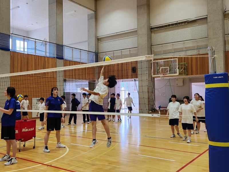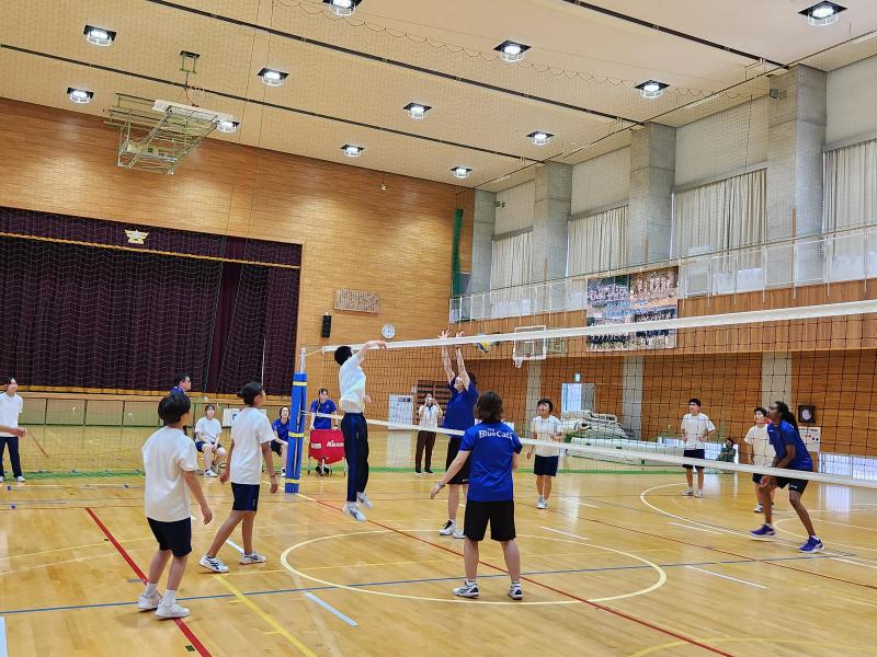 7月18日(木)の昼休みにミニスポーツ大会を行いました。その後に、PFUブルーキャッツさんにバレーボールを習いました。最後は、校内で勝ち上がったチームとゲームをしました。とてもいい時間でした。有難うございました。