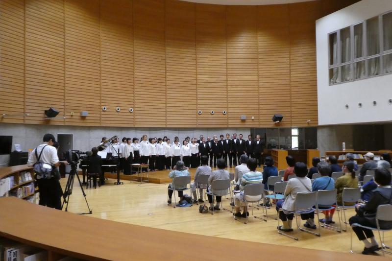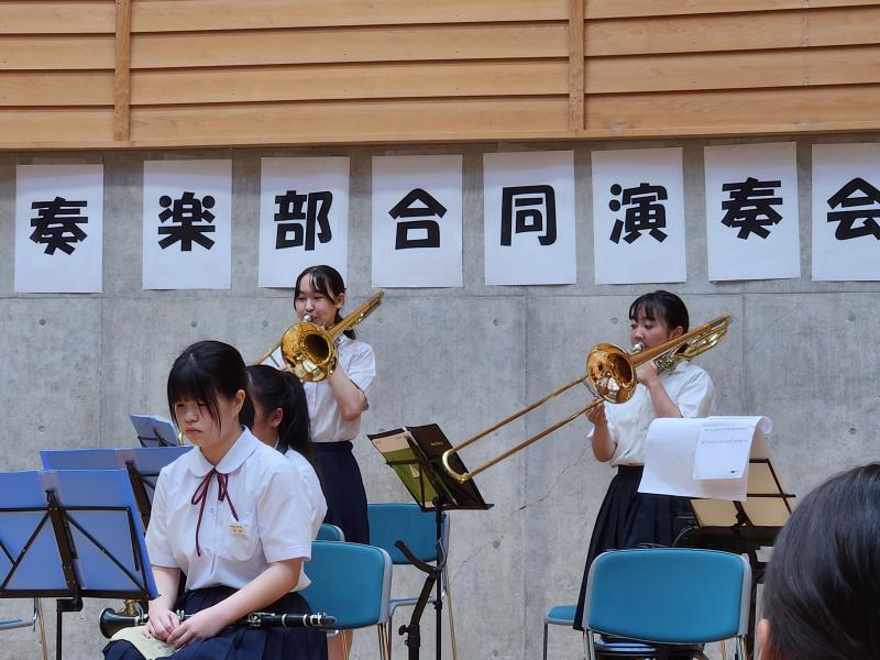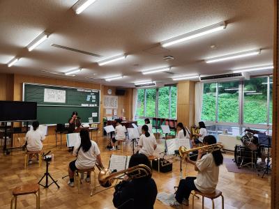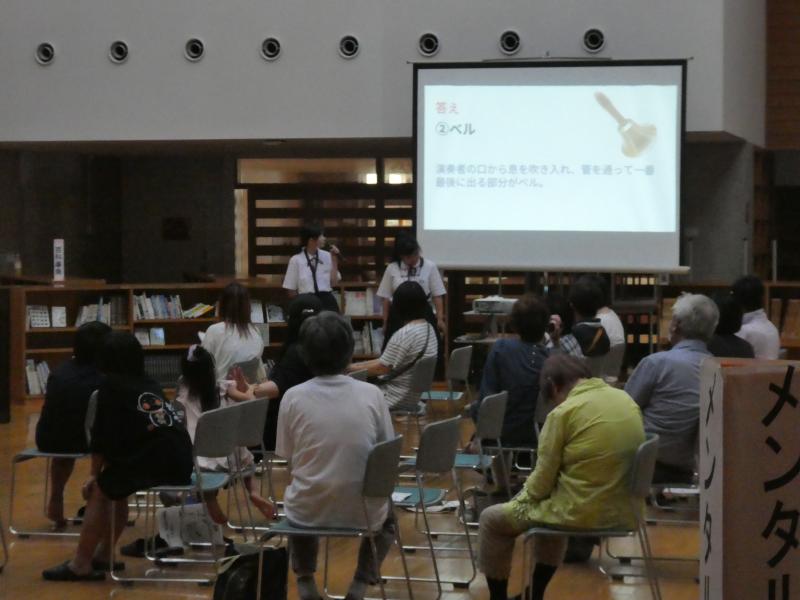 演奏会が行われました。小学生と中学生がメディアセンターに集まり演奏を聞きました。