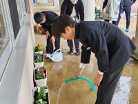 入学式には松本市の炊き出し支援チームからラナンキュラスの花を、NPO花街道さんからはマーガレットのプランターをいただき、華やかに会場を飾ることができました。ありがとうございました。