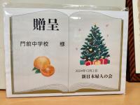 愛知県碧南市の危険物安全協会さまと臨海工業地帯防災連絡協議会さまより、輪島市の子どもたちへお菓子の詰め合わせが送られてきました。門前中学校へは本日郵送で届き、終礼時に生徒たちに配りました。