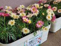入学式には松本市の炊き出し支援チームからラナンキュラスの花を、NPO花街道さんからはマーガレットのプランターをいただき、華やかに会場を飾ることができました。ありがとうございました。