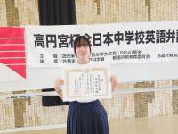 9月28日(土)に行われた高円宮杯第76回英語弁論大会石川大会で、3年生の菅原結花さんが2位に入賞し、11月28日(木)に行われる全国大会に出場することとなりました。今回経験した震災から、自分たちができることの一つとして修学旅行でのPR活動についてスピーチをしました。全国大会でも能登の現状を伝え、能登と全国を繋ぐ役割を果たしてきてくれることを願っています。