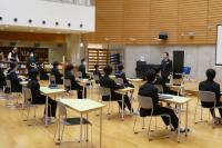 12月17日(火)に自衛隊石川協力本部 輪島分駐所・能登地域事務所 から荒木1等陸尉と多田広報官の2名を講師としてお招きし、防災教室を行いました。災害の種類や門前地区の地理的な特徴を知るとともに、居住地区の避難所についても確認しました。地震と豪雨災害の2つの状況から、地図を用いてどの避難所へどの経路をたどっていくかグループで話し合いましたが、河川の状況や建物の倒壊状況など、その時々の状況によって避難経路や避難場所は変わるため、正解は一つではない、ということを学びました。また、防災バッグの中身についても紹介があり、3日分の水の重さに驚いていました。いざというときに自分の命を守る事ができるように、今後も学んでいく予定です。ご家庭でも、ぜひ話し合ってください。