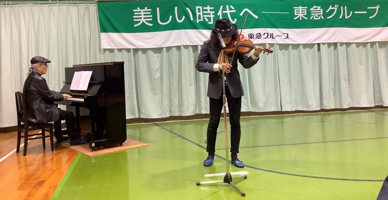 令和7年11月7日(金)、北陸東急会の主催事業として、全盲のバイオリニスト 穴澤雄介氏とピアニスト 野田正純氏による「ふれあいコンサート」を本校体育館で開催しました。