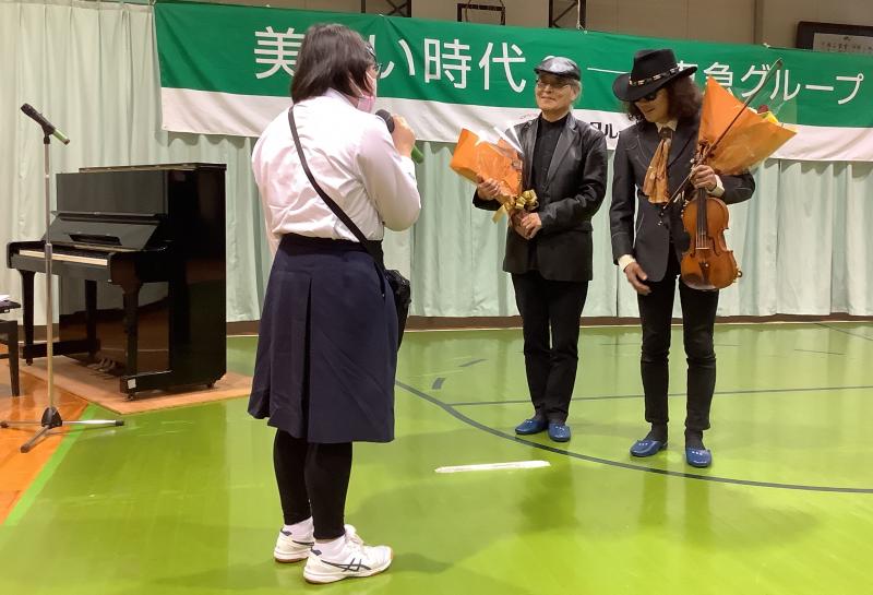 コンサートの後には、児童生徒代表が花束を渡したり、演奏の感想を交えてお礼の言葉を伝えたりして、感謝の気持ちをあらわしました。