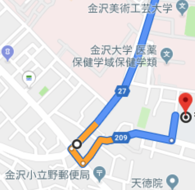 2. 金沢美大を過ぎてから、石引1丁目交差点を左折します。