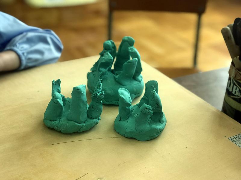 切り糸やかきべらをつかって、ねん土をさまざまな形にかえながら作品つくりを行う活動です。