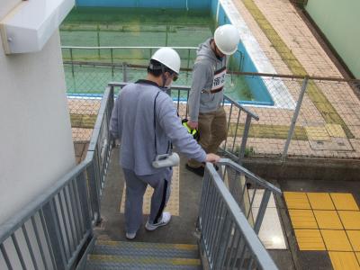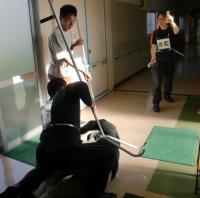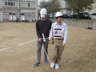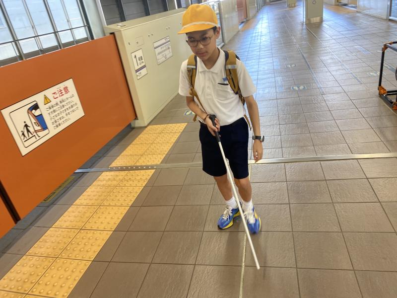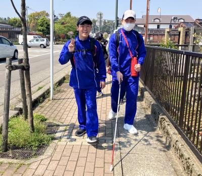 また、手引きをしながら白杖を使ったり、白杖だけで歩いてみました。
