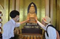 「ビリケンさん」の足をなでなで。ご利益がありますように。