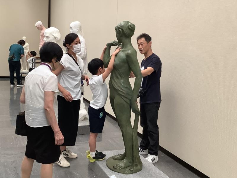金沢美術工芸大学の石田先生の案内で、展示作品の解説を聞いたり、触ることができ、