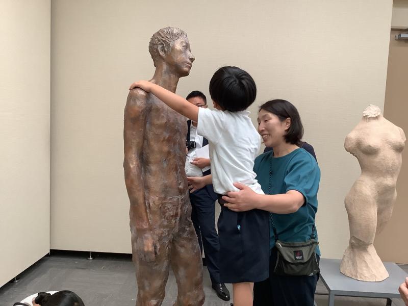 ・石田先生が、作った作品の木の茶色いところの横にいた人の彫刻は、