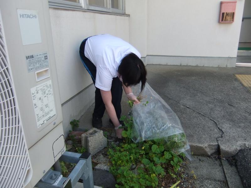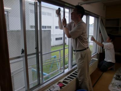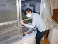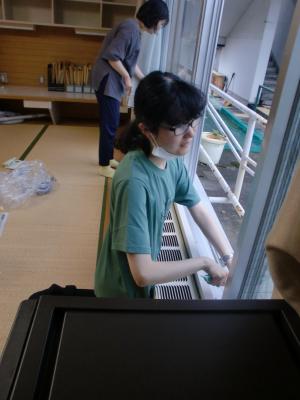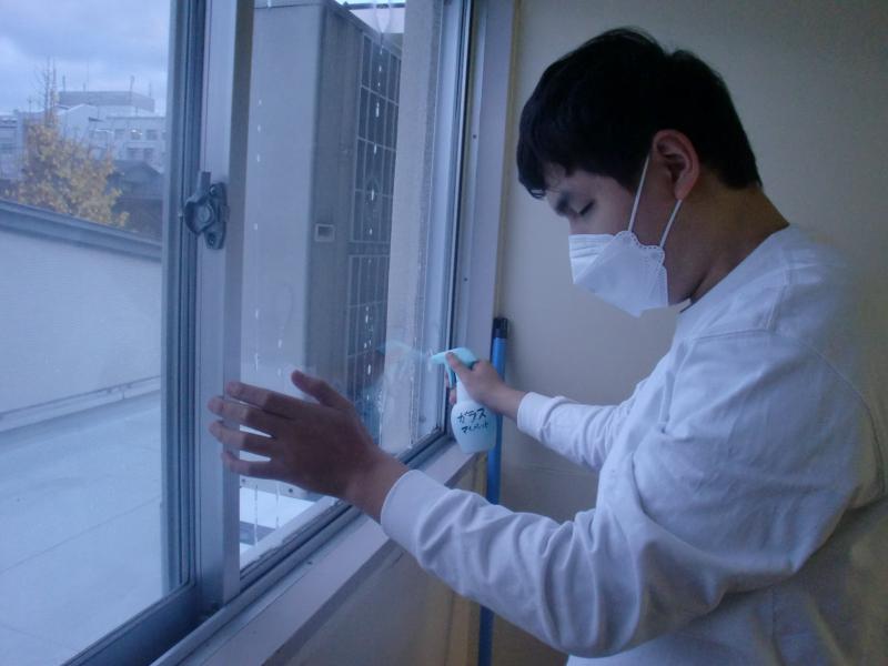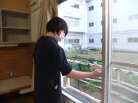 窓の掃除を中心に、普段できない所を掃除しました。また、当日はとても暑い日でしたので、こまめに水分を摂り、熱中症に気をつけながらおこないました。