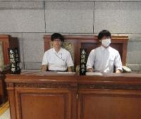 今年度、初めて「石川県庁」でヘルスキーパー実習を実施しました。2,3年生3名の生徒が参加し、石川県庁で働いておられる方や訪問された方を対象に10分間のマッサージ施術を行いました。石川県教育委員会教育長をはじめ、約40名の方々にお越しいただき、「ヘルスキーパー」という仕事を知っていただく良い機会となりました。