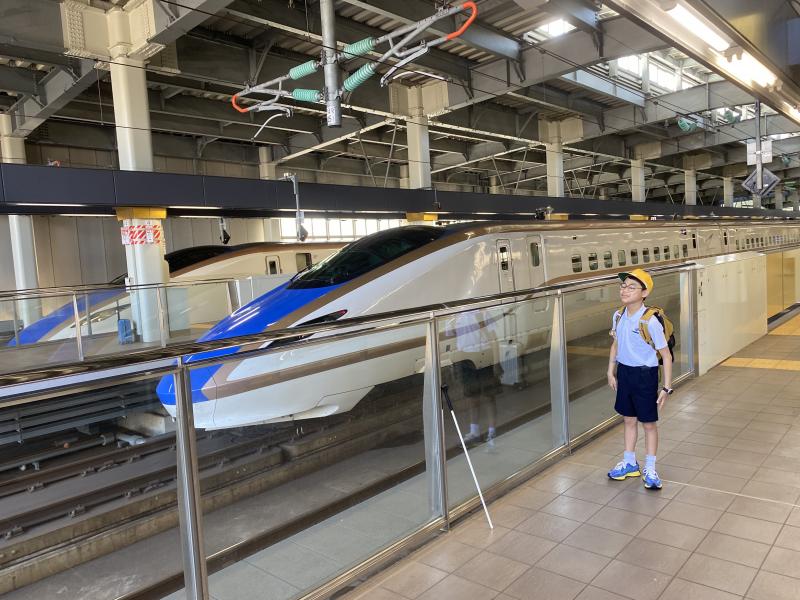 金沢駅で入場券を買い、お目当ての新幹線を見たり、発車メロディーや、案内放送、自動放送をタブレット端末で見たり、録画をしました。新幹線ホームでは、ホームによってドアの閉まる音が違うこともわかりました。