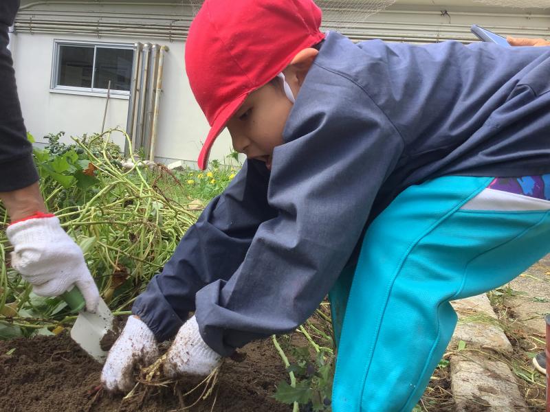 「なかなか、ぬけない!!」でも、土を掘ったり、力を入れてひっぱたりして抜きました!