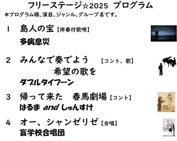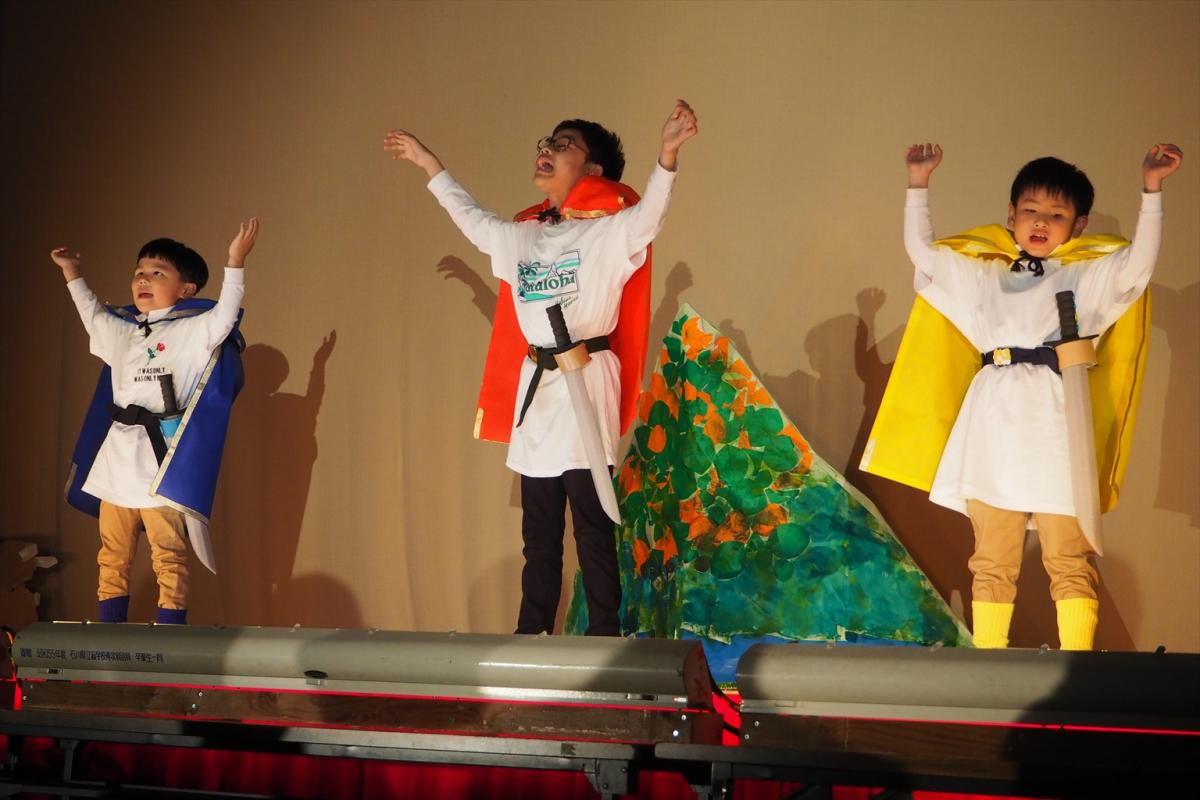 小学部のオペレッタ 「3人の勇者のガラガラドン」では、小学部の3人が元気いっぱいの演技で会場を盛り上げました。中学部・普通科劇「盲学校あるあるクイズ」では会場の皆さんを巻き込むクイズで驚きを与え、例年とは一風変わった、楽しいステージ発表でした。